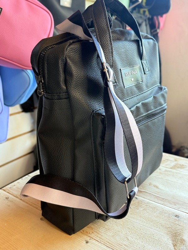 Mochila confeccionada en cuerina de excelente calidad, resistente y fácil de limpiar. Su diseño se destaca por las manijas sublimadas, que le aportan un detalle único y moderno.