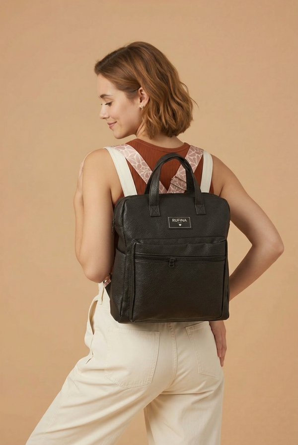 Mochila confeccionada en cuerina de excelente calidad, resistente y fácil de limpiar. Su diseño se destaca por las manijas sublimadas, que le aportan un detalle único y moderno.