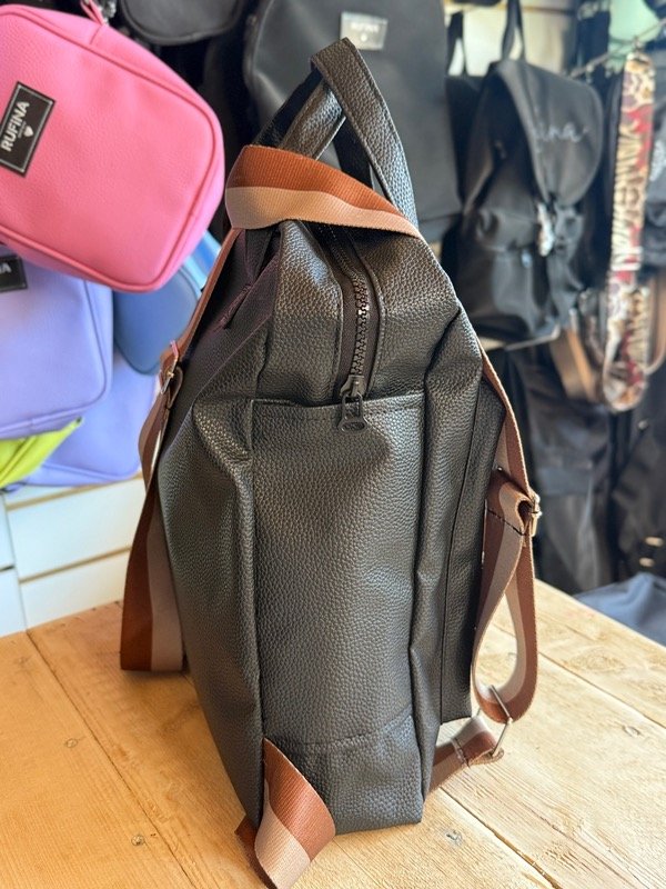 Mochila confeccionada en cuerina de excelente calidad, resistente y fácil de limpiar. Su diseño se destaca por las manijas sublimadas, que le aportan un detalle único y moderno.