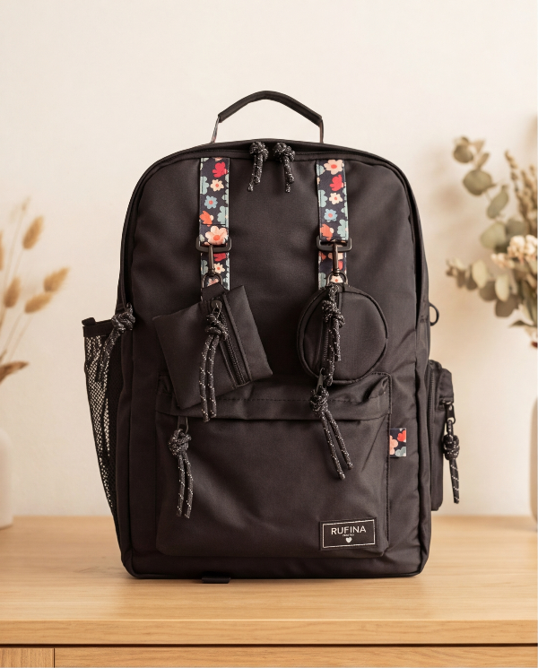 Con amplio espacio, bolsillos funcionales y detalles florales exclusivos que le aportan ese toque delicado y original de Rufina.