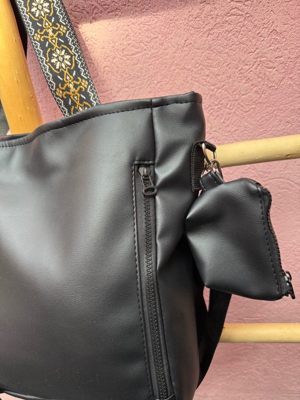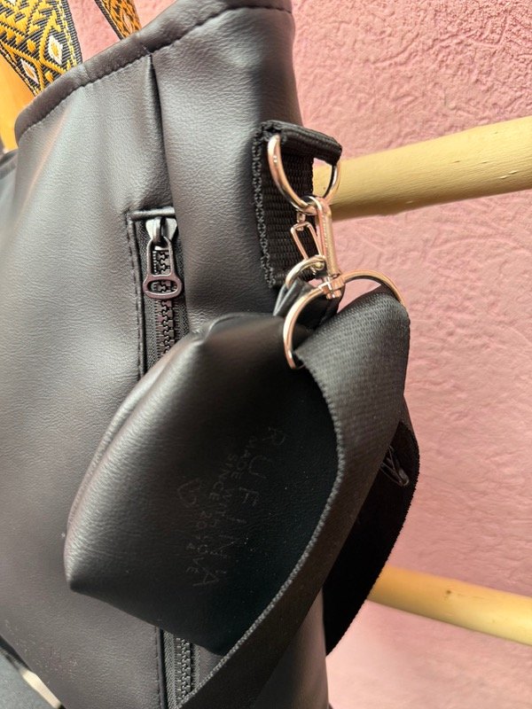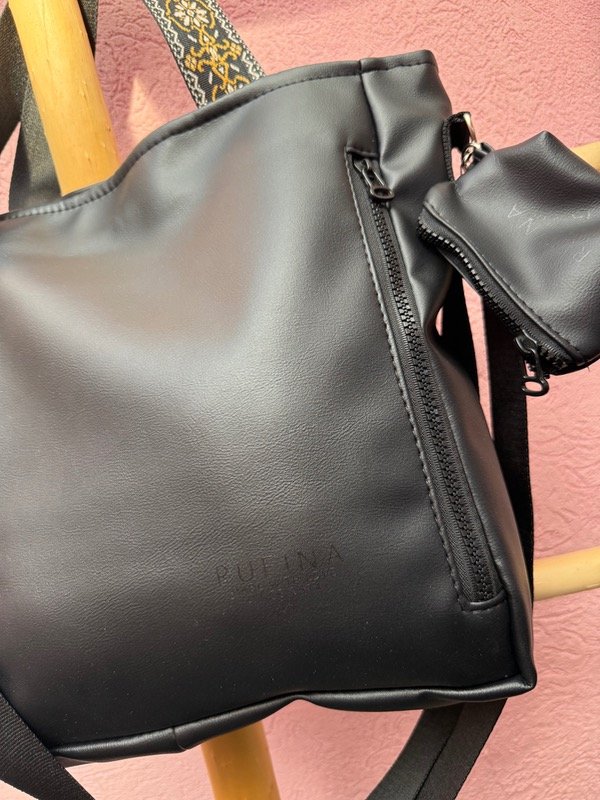 En el exterior incorpora un bolsillo con cierre, ideal para acceder rápido a lo que necesitás. Además, trae un monedero desmontable con la marca, que suma funcionalidad y un toque distintivo.